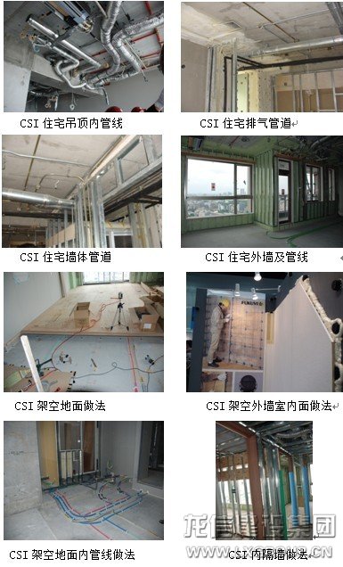 4、拼裝式CSI全裝修住宅:為了與預制裝配整體式鋼筋混凝土建筑的裝修配套,減少在預制階段管線預埋的工作量,同時方便日后裝修改造,我們與住建部住宅產業化促進中心等合作研發了拼裝式CSI全裝修住宅技術。CSI住宅外部結構支撐體采用高耐久性的預制混凝土材料,延長了住宅的使用壽命。戶內樓蓋采用整體無梁樓蓋形式設計。為便于改裝改修,盡量做到一個整體大空間,無小橫梁以及內部結構墻,由柱子圍繞,可使隔斷墻和各種管線自由分布;層高在現有室內凈高的基礎上增加200mm—300mm作為架空地板層,各種管線鋪設在架空層內,相當于每戶增加一個管道層,實現了同層排水;土建施工時廚房、衛生間、內隔墻不定位,住戶可以根據自己的需要隨意安放。
