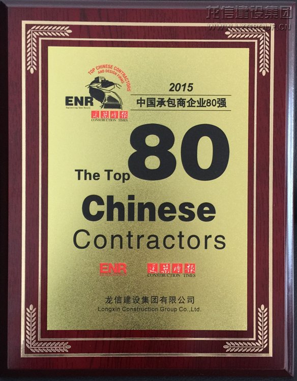 11月19日, 由美國《工程新聞記錄》(ENR)和中國《建筑時報》共同主辦的2015年“中國承包商80強”榜單在南京發(fā)布,龍信建設集團有限公司第7次入選該榜單,此次名列第32位。